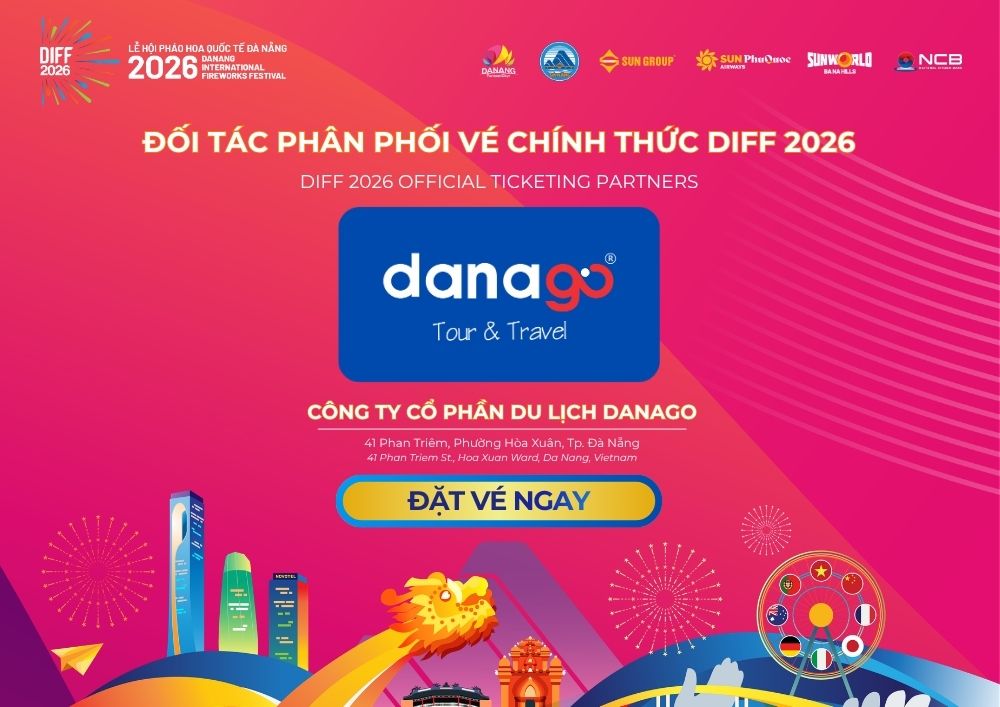 DANAGO không chỉ là công ty lữ hành lớn và uy tín tại Đà Nẵng, mà bên cạnh còn là Đối tác chiến lược phân phối vé pháo hoa Đà Nẵng chính thức của Ban tổ chức DIFF 2026.